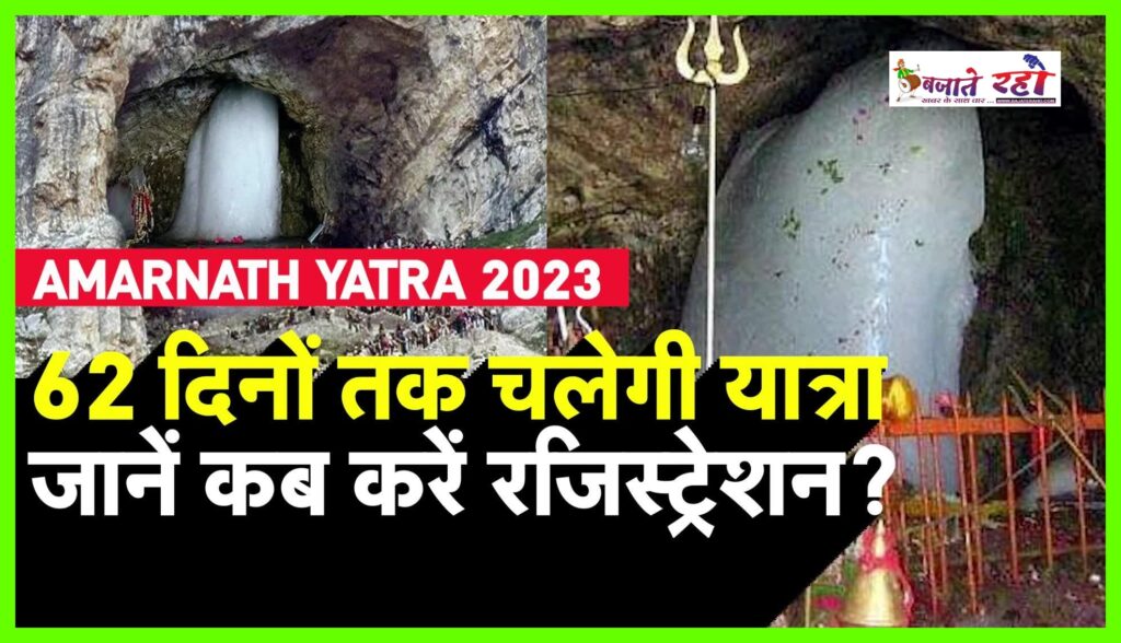 जम्मू और कश्मीर में 62-दिवसीय श्री अमरनाथजी यात्रा इस वर्ष 1 जुलाई को शुरू होगी और 31 अगस्त 2023 को समाप्त होगी। यात्रा के लिए पंजीकरण यानि रजिस्ट्रेशन 17 अप्रैल से ऑफलाइन और ऑनलाइन मोड में शुरू होंगे। यह यात्रा दोनों मार्गों अनंतनाग जिले में पहलगाम ट्रैक और गांदरबल जिले में बालटाल से एक साथ शुरू होगी। इसके अलावा अमरनाथ धाम से बाबा की आरती का सीधा प्रसारण भी देखने को मिलेगा। देश और दुनियाभर के लोग घर बैठे भी बाबा अमरनाथ धाम के दर्शन कर पाएंगे।