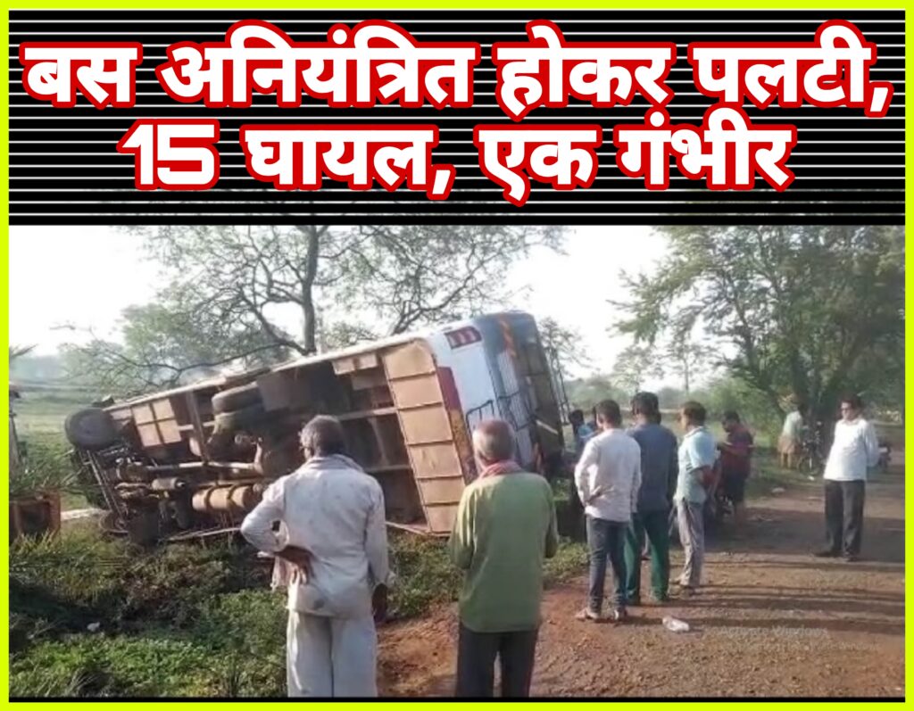 प्राप्त जानकारी अनुसार बीती देर रात लगभग एक बजे एक बस दुर्ग की ओर से आ रही थी। तभी कचांदुर नाले के पास बस अनियंत्रित होकर पलट गई। बस में करीबन 50 से 60 लोग सवार थे। जिसमें 15 लोगों को चोटें आई है, इसमें एक 56 वर्षीया महिला गंभीर है। जिसे रेफर किया गया हैं।