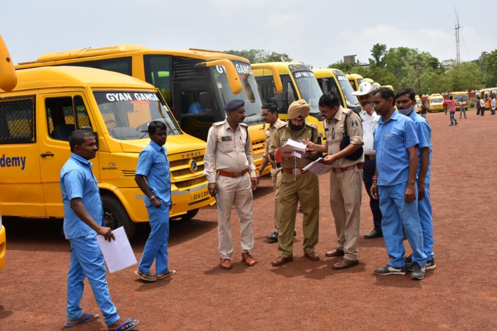 रायपुर :- वरिष्ठ पुलिस अधीक्षक जिला रायपुर से प्रशांत कुमार अग्रवाल के निर्देशन पर यातायात पुलिस रायपुर परिवहन विभाग द्वारा संयुक्त रूप से शिक्षण सत्र प्रारंभ होने के पूर्व छात्र छात्राओं की सुरक्षा एवम सुगम सुरक्षित आवागमन हेतु जिले के शैक्षणिक संस्थानों में संचालित स्कूली बसों का मैकेनिकल जांच एवं चालक/ परिचालकों का नि:शुल्क स्वास्थ्य नेत्र परीक्षण शिविर का आयोजन पुलिस परेड ग्राउंड में किया गया है उक्त जांच शिविर में कुशल मैकेनिकों द्वारा स्कूल बसों का मेडिकल जांच किया जाएगा, तथा शहर के प्रतिष्ठित अस्पतालों के चिकित्सकों द्वारा चालक परिचालकों का स्वास्थ्य नेत्र परीक्षण किया जाएगा।