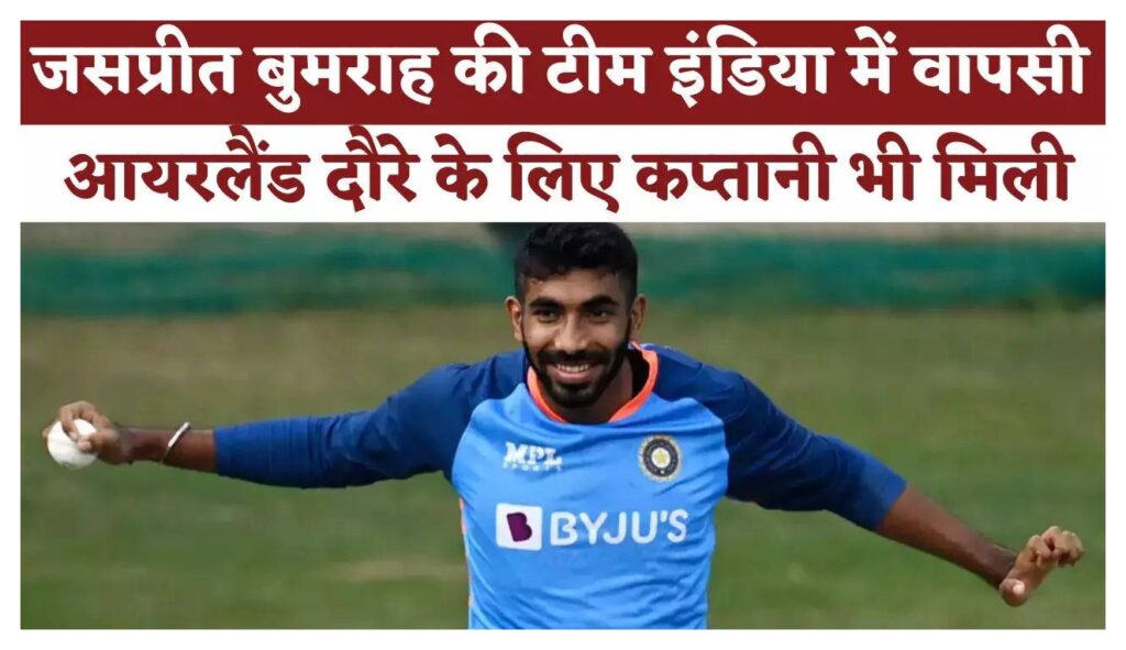 बीसीसीआई ने आयरलैंड दौरे के लिए सोमवार शाम भारतीय टीम का ऐलान कर दिया है। तीन टी20 मैचों की इस श्रृंखला के लिए जसप्रीत बुमराह की भी वापसी हुई है। यही नहीं उन्हें टीम की कमान भी सौंपी गई है। बुमराह की कप्तानी में भारतीय टीम 18 से 23 अगस्त के बीच तीन टी20 मैच खेलेगी।